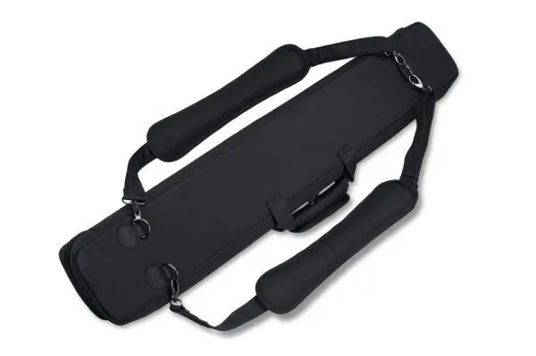The sturdy nylon encasement is lightweight, flexible, scuff, tear, and water resistant. Carry it like a briefcase—with its reinforced padded handles; sling it over your shoulder with its double-padded swiveling metal hardware straps, or use both (removable) straps for hands-free backpack-style wear.